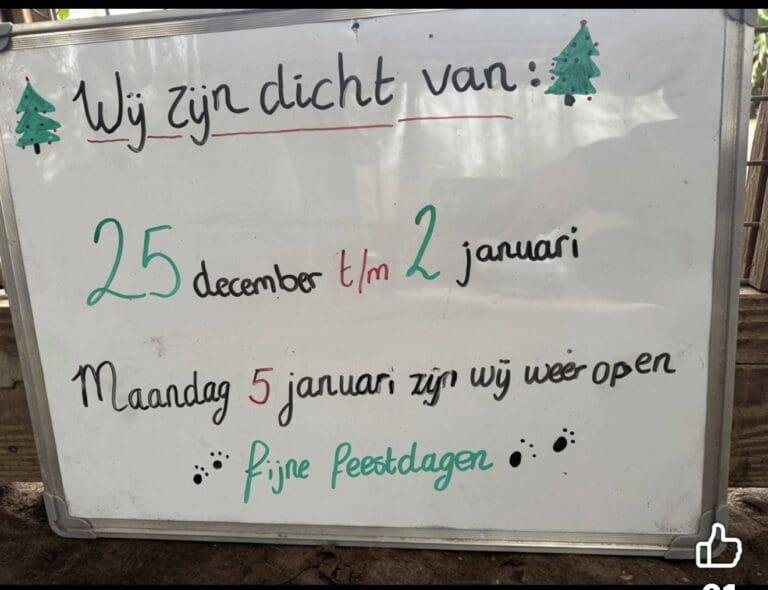 Wij zijn open tussen de feestdagen. 1-1 zijn we gesloten.